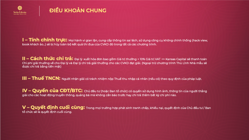 THÔNG BÁO CHƯƠNG TRÌNH THI ĐUA CVKD SETIA EDENIA